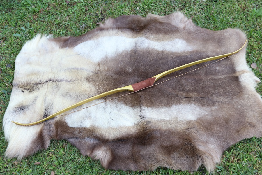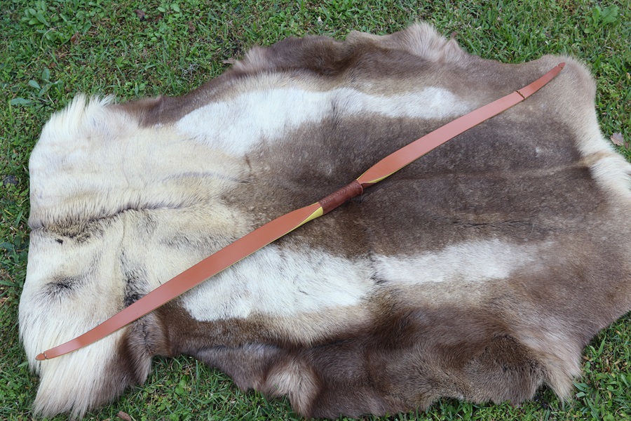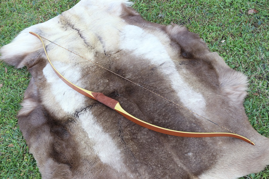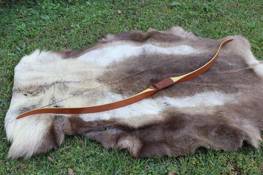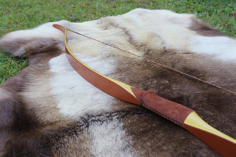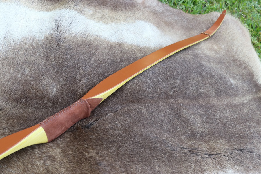 This Particular version is about 60 inches long, has a larger, contoured handle with an arrow-shelf, a dacron string, straight limbs with a copper-colored backing, and a bark-tanned colored stitched grip. Pure, basic, reliable, simplicity. They come with a 2 year official warranty, but as many know, the HuntPrimitive integrity typically runs much deeper than 2 years. This is a primitive-themed bow that is hard to beat!