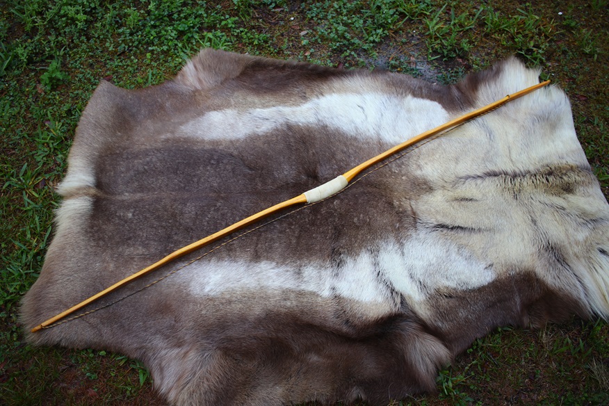 Bow #460 is a made from a solid piece of Osage wood in the classic Eastern Woodland (Cherokee inspired) design. It is built for a right handed shooter and is about 64″ long nock to nock, and pulls 45# @ 27″ (not to be drawn further than 27″). It has a leather wrapped grip designed to be shot off-knuckle, diamond shaped nocks, and a B-55 bow string. It’s a really nice piece of wood with just a touch of natural character with wiggles and knots. It’s a beautifully simple, reliable, reliable hunting bow, ready to ship!