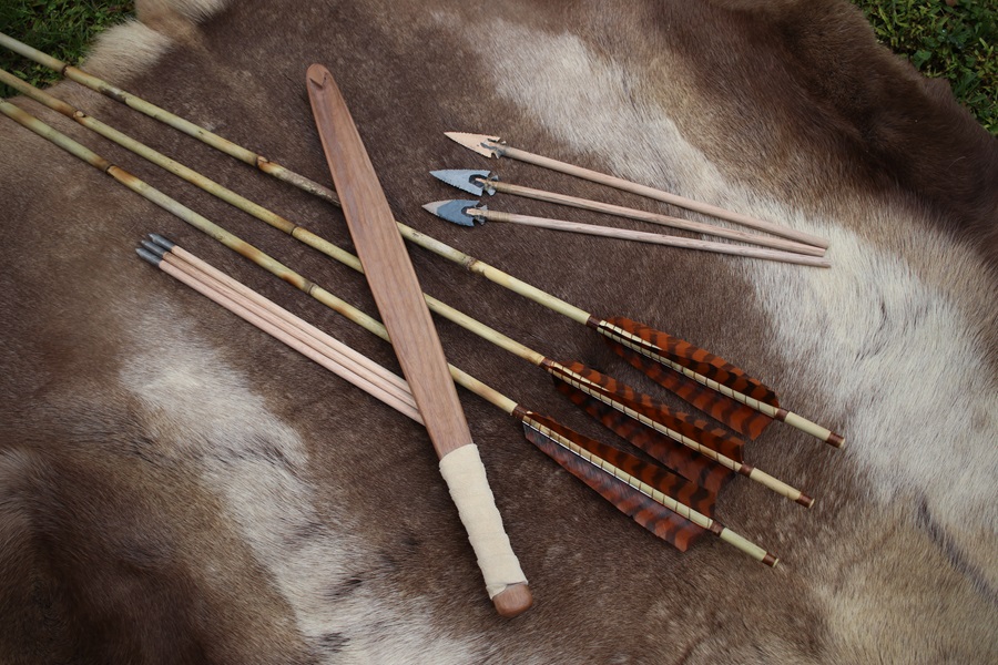 The HuntPrimitive River Cane Hunter Atlatl set is a scaled up version of the Starter Atlatl set and suited for hunting Deer/wild hog sized game animals. These are the best serious hunting/contextual atlatl sets available, based on success from real hunts as seen on the HuntPrimitive YouTube Channel. These River Cane sets are 8ft long overall, and the most robust and smoothest flying option available.